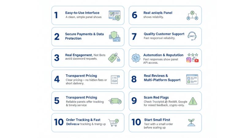 Even if a panel looks safe, don’t spend big right away. Test with a small order first. See how they deliver, check the quality of followers, and try contacting support. If everything goes well, then scale up.
